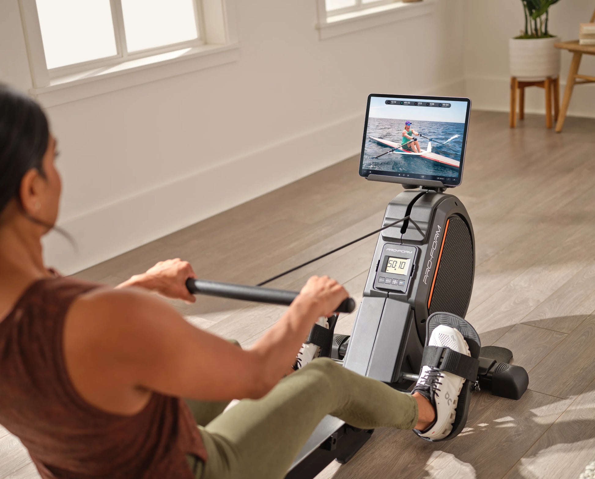 Le rameur ProForm 550R offre une expérience d'entraînement complète avec une résistance magnétique silencieuse et réglable, idéale pour renforcer efficacement le cardio et la musculature. Sa structure robuste garantit une stabilité optimale, tandis que son écran interactif facilite le suivi précis des performances. Conçu pour s’adapter à tous les niveaux, ce rameur combine confort et efficacité pour des séances intensives et progressives.