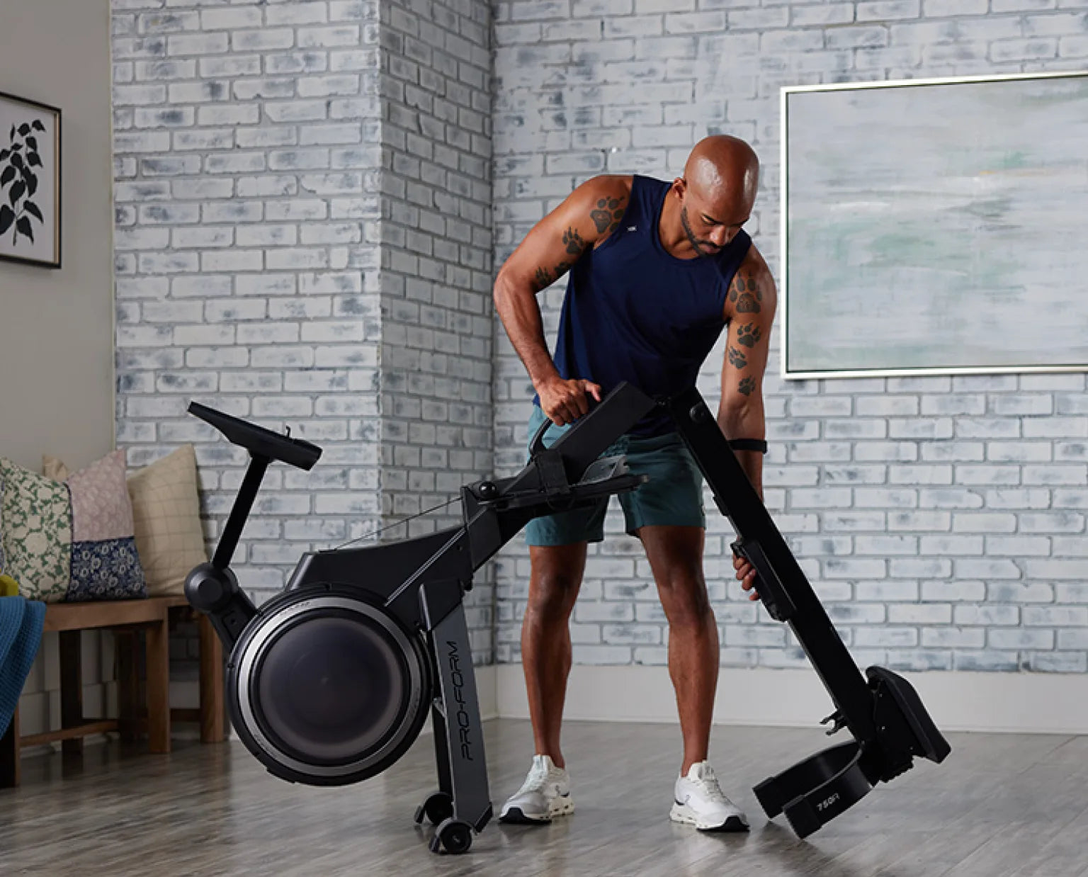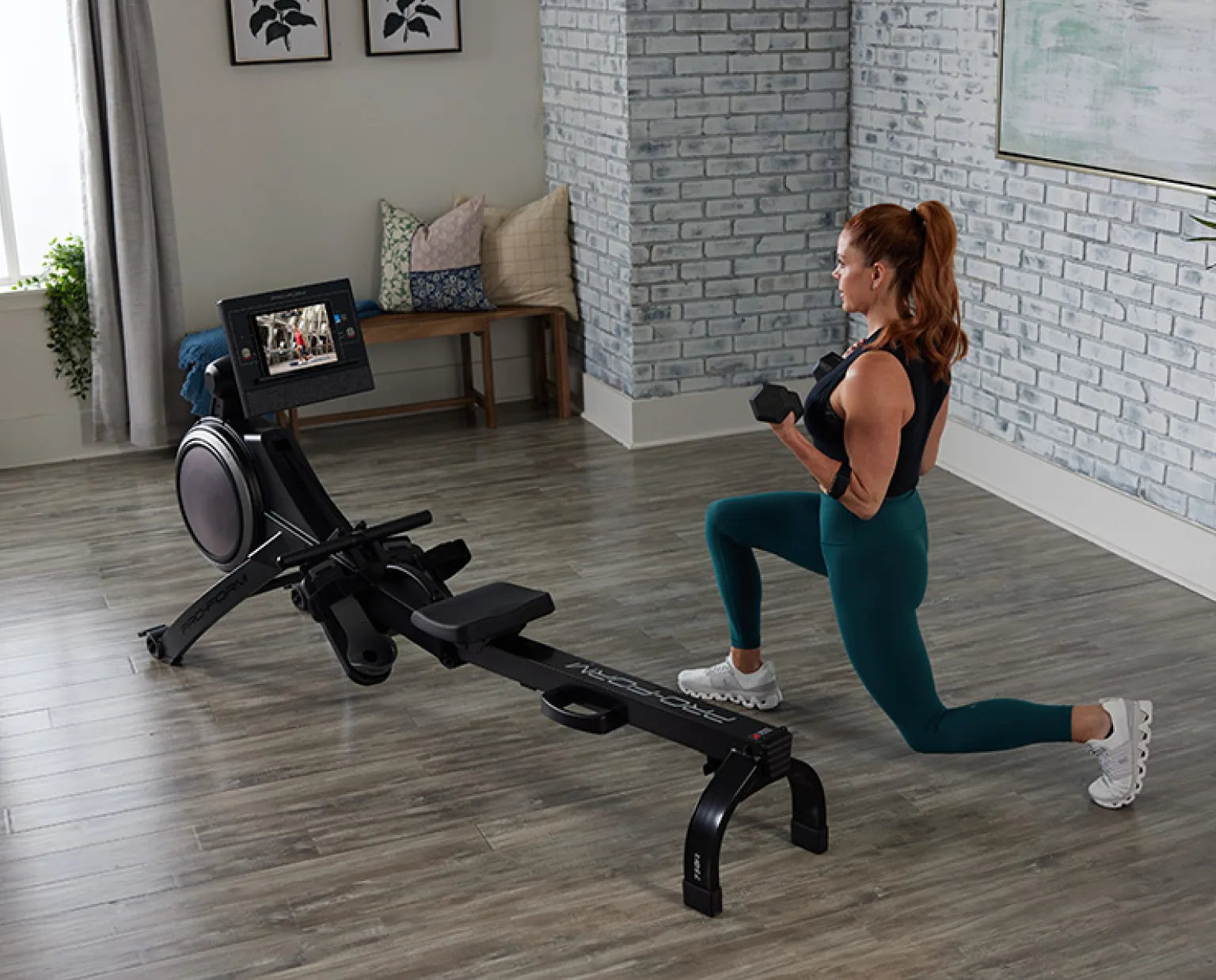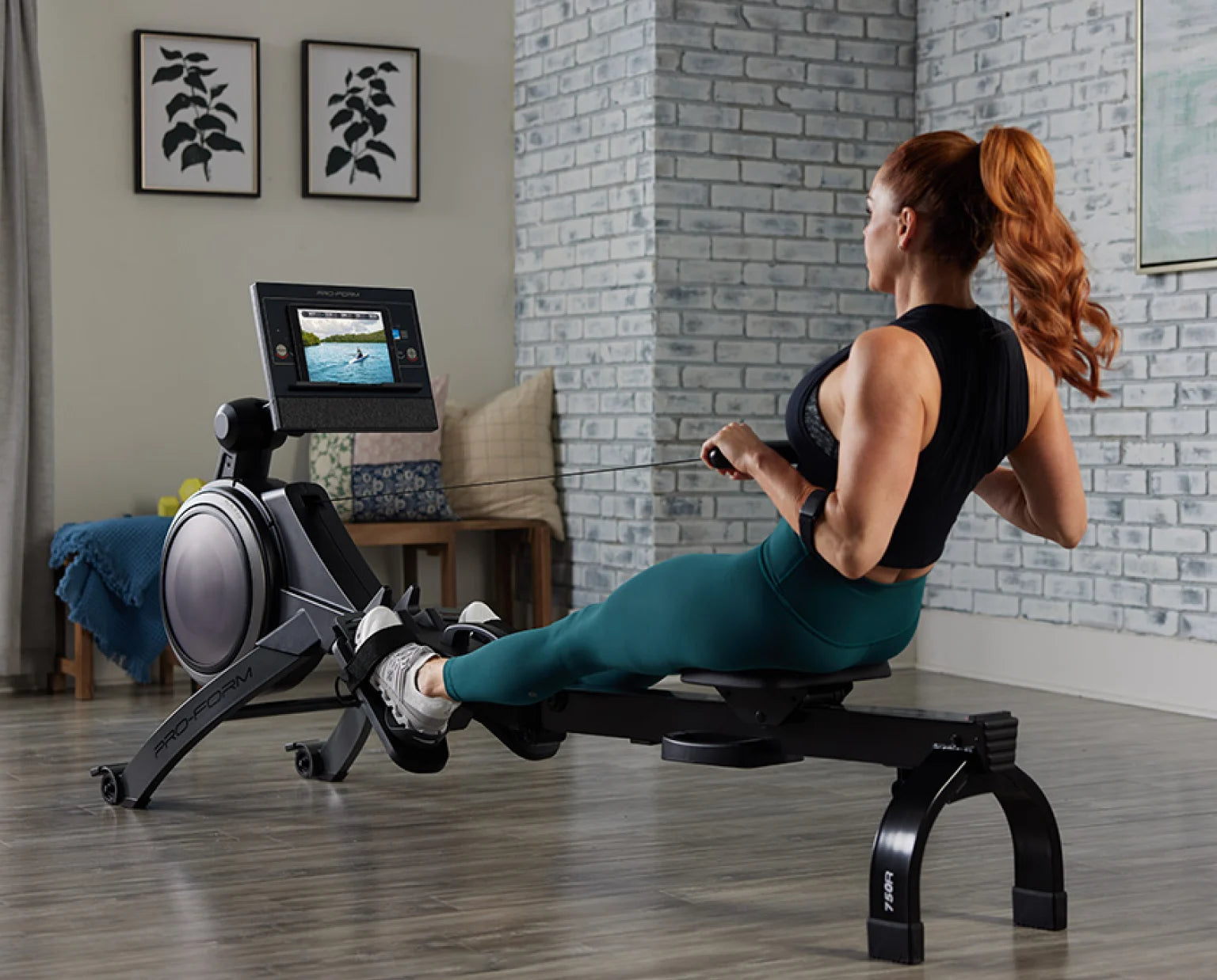 Le Rameur ProForm 750 R offre une expérience d'entraînement complète, combinant robustesse et technologie avancée. Conçu pour soutenir des séances intenses, il dispose d’une résistance magnétique silencieuse et réglable, idéal pour travailler l’endurance et la puissance. Son écran intégré permet un suivi précis des performances en temps réel, favorisant un entraînement ciblé et efficace. Ergonomique, ce rameur garantit un confort optimal grâce à son siège rembourré et son design ajusté, réduisant les risques de fatigue ou de blessure lors des exercices prolongés.